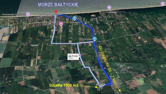 5Sprzedam działkę o powierzchni 1050 mkw w miejscowości Zagaje obok Sarbinowo, Chłopy, w odległości ok 2 km do morza, ...